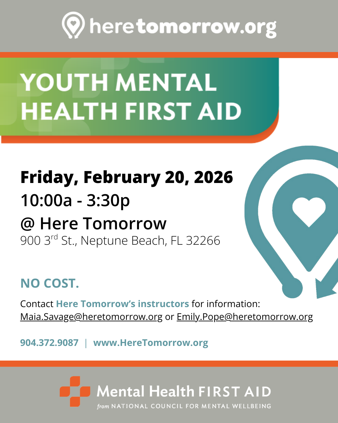 This YMHFA training at Here Tomorrow is open to anyone in the community at NO COST: